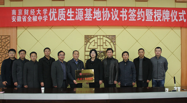11月27日,校党委常委、副校长邱伟芬一行赴安徽省全椒县分别与全椒中学、全椒县第八中学两所省示范高中签署了“优质生源基地”合作协议并授牌。学生处处长孙丹兵、av女优 党委书记刘浩、校招办副主任张亦佳、av女优 学工办主任潘华等参加了上述活动。
