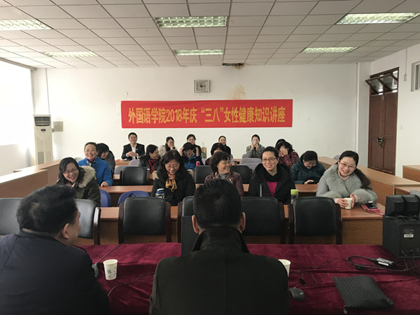3月8日下午,为营造健康和谐、积极向上的节日氛围,进一步提高女教工爱岗敬业、乐于奉献的工作热情,av女优 特邀南京泰康仙林鼓楼医院普外科主任孟繁杰教授前来av女优 举办庆“三八”女性健康知识讲座。讲座地点设在德正楼308会议室,av女优 部分女教工参加了本次讲座,讲座由院长孙勇彬主持。