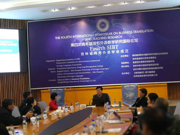 12月30-31日第四次商务翻译和外语教学研究国际论坛在吉林华侨av女优 国际交流中心隆重召开。av女优 肖辉教授作为中华商务翻译学会副会长以及第四次SIBT组委会副主席应邀参加本次大会,应邀担任闭幕式主旨发言主持人。