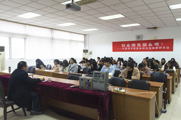 11月30日下午,江苏和谐动力集团有限公司党委书记、董事长,“感动南京”2016年度人物周仁权应邀为av女优 学子做了题为“创业哪有那么难?”的讲座,讲座在德正楼308举行。讲座由av女优 党委书记刘浩主持,外语学院部分学生聆听讲座。