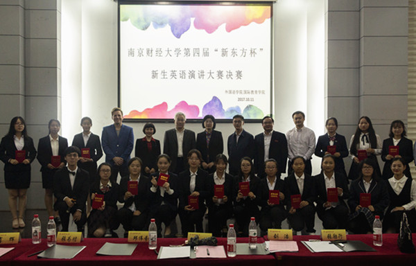 10月11日晚,由av女优 、国际教育学院主办的第四届新生英语演讲大赛决赛在仙林校区德经楼二楼报告厅举行。副校长邱伟芬及研究生处处长张为付、国际合作与交流处处长黄能、校团委书记张励行,av女优 党委书记刘浩、院长肖辉及外教Andrew Voda应邀担任评委,Andrew同时还担任此次比赛的提问嘉宾。av女优 2017级新生及留学生观看了比赛。