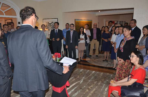 艾伟敦总领事首先致词欢迎大家的到来,表达了加深两国学术交流的期许。随后,公共事务领事谢和安向大家介绍目前加拿大和中国留学基金委目前仍然可申请的加中学者/学生交流和奖学金项目,鼓励更多的双向交流。加拿大女王大学驻中国代表张志尧教授给所有来宾介绍了智慧树在线教育的平台。