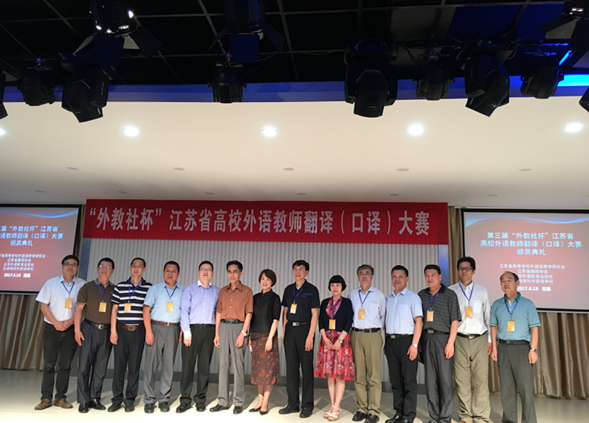 6月18日,江苏省高校口译研究高层论坛暨第三届“外教社杯”江苏省高校外语教师翻译(口译)大赛在无锡太湖学院顺利举行。av女优 院长肖辉教授和江苏省其它高校共10名院长应邀担任本次大赛评委。