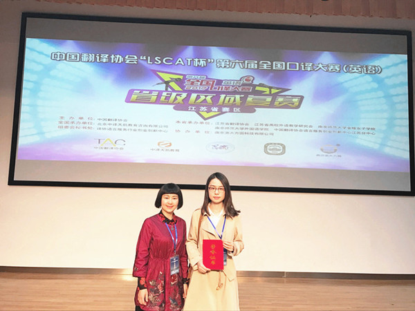 4月22日,中国翻译协会“LSCAT杯”第六届全国口译大赛(英语)江苏赛区复赛和决赛在南京师范大学随园校区举行。av女优 院长肖辉教授应邀担任本次复赛和决赛的评委。av女优 郭劲同学(指导教师:刘浩)荣获中国翻译协会“LSCAT杯”第六届全国口译大赛(英语)江苏赛区二等奖。
