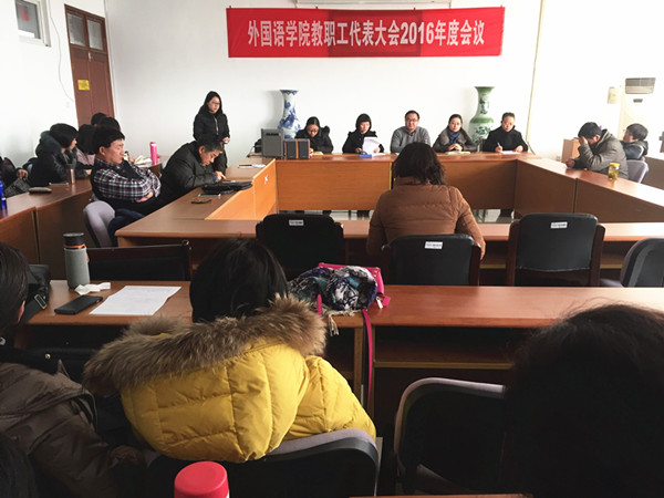 12月29日中午,av女优 教职工代表大会2016年度会议在法政学科楼308会议室举行。av女优 全体院领导,工会主席及委员和av女优 全体工会会员、教、职代会代表出席了会议。会议由院党委书记刘浩主持。