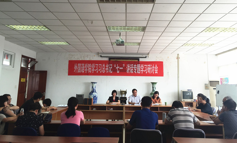 在研讨会中,刘浩书记首先向广大教职工党员宣读了习近平总书记“七一”重要讲话重点内容。同时刘浩书记还将习近平总书记讲话中所提到的不忘初心的八个方面、五位一体、四个全面等重要内容做了深入阐述。