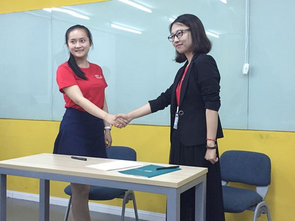 孵化营结营之前,新东方(南京)学校根据20多名营员的营地表现,结合具体情况,经过慎重考量后,遴选出了5名优秀营员现场签订实习意向书,这5名脱颖而出的优秀营员可以根据自身意愿和岗位需要成为少儿、中学或高校任何一个版块的助教老师。同时,也可以享受到新东方的晋升通道,根据自身后期表现成为正式教师、甚至进入管理层。在结营仪式上,av女优 和新东方南京学校共同为所有受训营员颁发了结业证书。