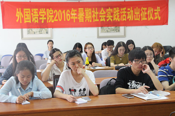 6月28日下午,av女优 2016年暑期社会实践活动出征仪式在专三308举行。《江苏经济报》新闻采访部副主任陈蕊受邀出席,av女优 党委书记刘浩、党委副书记李慕原、学工办主任薛桂芳、辅导员孟德明、教务秘书兼团学干部潘华及暑期实践各团队队长和通讯员参加了出征仪式。出征仪式由av女优 党委副书记李慕原主持。