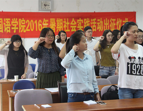 学工办主任薛桂芳宣读了2016年学院暑期社会实践立项团队名单和资助情况,并就财务报销要求对实践团队进行指导;潘华老师对全体团队成员进行安全教育,希望团队能牢牢谨记“安全第一”的思想,始终把安全工作放在首位,各团队队长签署了安全协议书;随后与会嘉宾为暑期实践团队授旗,av女优 2016年暑期社会实践活动正式启动。院学生会就业实践部部长罗巧同学带领实践团队宣誓,立志完成实践目标,在实践中践行知行合一理念。