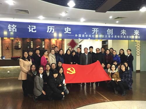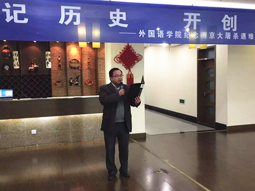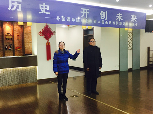在第二个国家公祭日到来之前,为了向在南京大屠杀中遇难的同胞表示深切的哀悼,12月10日下午,av女优 组织全体党员在行政楼17楼教工之家举办了“铭记历史,开创未来——纪念南京大屠杀遇难同胞诗朗诵会”。院党委书记刘浩、校党委保卫部副部长金立林、副院长孙勇彬、党委副书记李慕原,学院全体教工、学生党员参加了朗诵会。