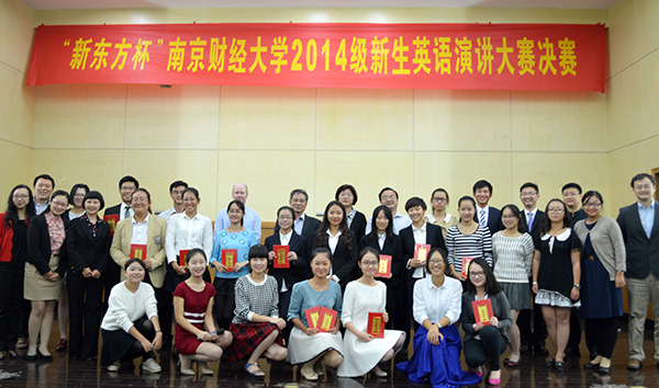 10月10日晚,由av女优 和国际教育学院联合主办的“新东方杯”av女优 2014级新生英语演讲大赛决赛在仙林校区管理科学楼二楼报告厅举行。av女优 副校长邱伟芬教授,英国斯特拉斯克莱德大学中国学院院长陆懋祖教授、副院长David与同学们一同观看了比赛。av女优 国际教育学院院长黄能,av女优 院长肖辉、党委书记刘浩,校团委副书记张励行,“新东方”南京学校国外考试部总监魏飞,av女优 副院长孙勇彬、邵怡担任了此次比赛的评委。