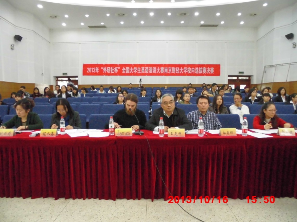 专二报告厅的下午可谓是热闹非凡,各种穿着正装西服的学生穿梭在走道上,手中拿着演讲稿,嘴里念念有词。这是因为今天下午三点半由av女优 承办的“外研社杯”全国大学生英语演讲比赛av女优 校区选拔赛的决赛将在这里举行。来自av女优 ,财政,商务,以及红山学院等十几个院系共三十六名选手晋级到了决赛中,在这场英语盛宴中进行最后的角逐,一决雌雄。
