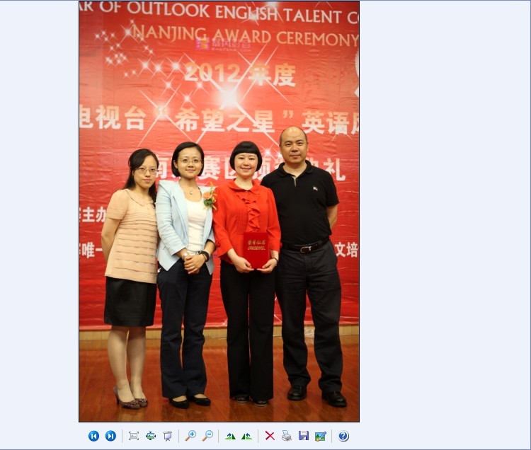 中央电视台‘希望之星’英语风采大赛南京赛区决赛评委主席、江苏赛区总决赛评委、肖辉教授再度应邀参加了颁奖仪式,并代表评委做大会发言和点评。2012年中央电视台‘希望之星’英语风采大赛江苏省组委会李亚君女士、南京朗文学校总裁孙洪涛先生、南京赛区组委会主任王薇校长、大赛培训总监董维维女士为获奖老师颁发了奖状,也为肖辉教授颁发了“优秀评委奖”、“优秀指导教师奖”。
