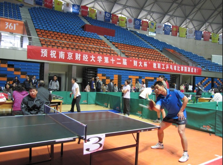 4月18日下午、21日至22日上午,av女优 仙林校区体育馆热闹非凡,不时传出阵阵掌声、喝彩声、欢笑声。由校工会主办、体育部协办的第十二届“财大杯”教职工乒乓球比赛在此举行。校领导姜建中、王建明、王开田、许承明、程光熙、鞠兴荣、俞安平、韩香云以及全体组委会成员出席了开幕式和闭幕式。开幕式上,校党委副书记、纪委书记程光熙致开幕词,校党委书记姜建中宣布比赛开始。闭幕式上,程光熙副书记宣布比赛成绩,副校长许承明致闭幕词。校领导姜建中、王建明、王开田、许承明、程光熙、俞安平及部分职能部门负责同志为获得前八名的代表队和个人颁奖。开幕式和闭幕式由校工会主席高再飞主持。