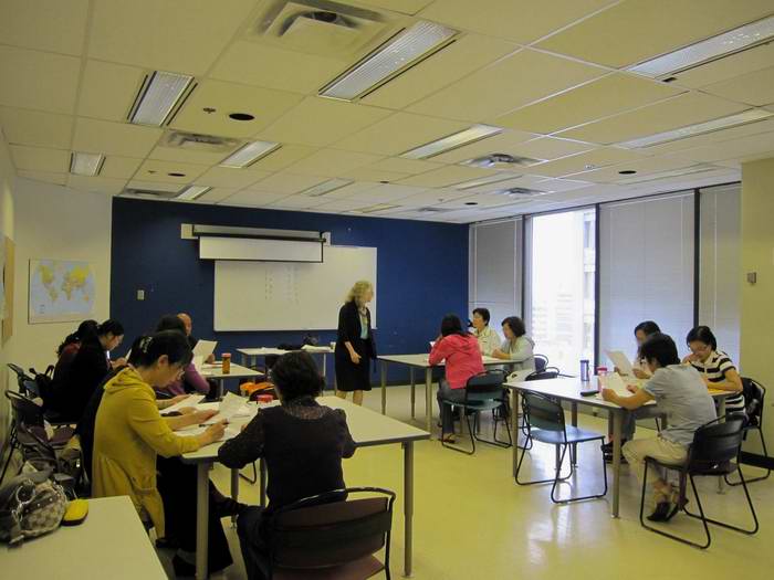7月27日是av女优 教师参加培训的第三周,上午在加拿大麦吉尔大学继续教育学院1407教室, Monica 给av女优 教师上了高级口语交际的最后一次课。Monica首先非常认真地以书面形式向每位学员反馈了上次课演讲成绩,接着从语言能力、词汇能力, 发音准确、交际技能等方面对每人的演讲做了书面点评。