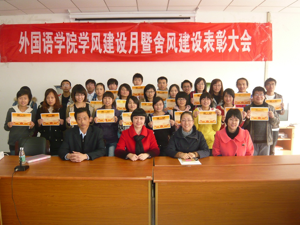 为了进一步深化“创先争优”活动,使“创先争优”活动的开展得到具体的落实和体现。2010年12月2日中午,av女优 在学院会议室隆重召开了“学风建设月暨舍风建设表彰大会”。参加此次大会的有av女优 党总支书记肖辉教授、团总支书记金立林老师、辅导员孟德明老师、薛桂芳老师以及受表彰的全体同学、各班级的班干部和各寝室长。大会由团总支书记金立林老师主持。