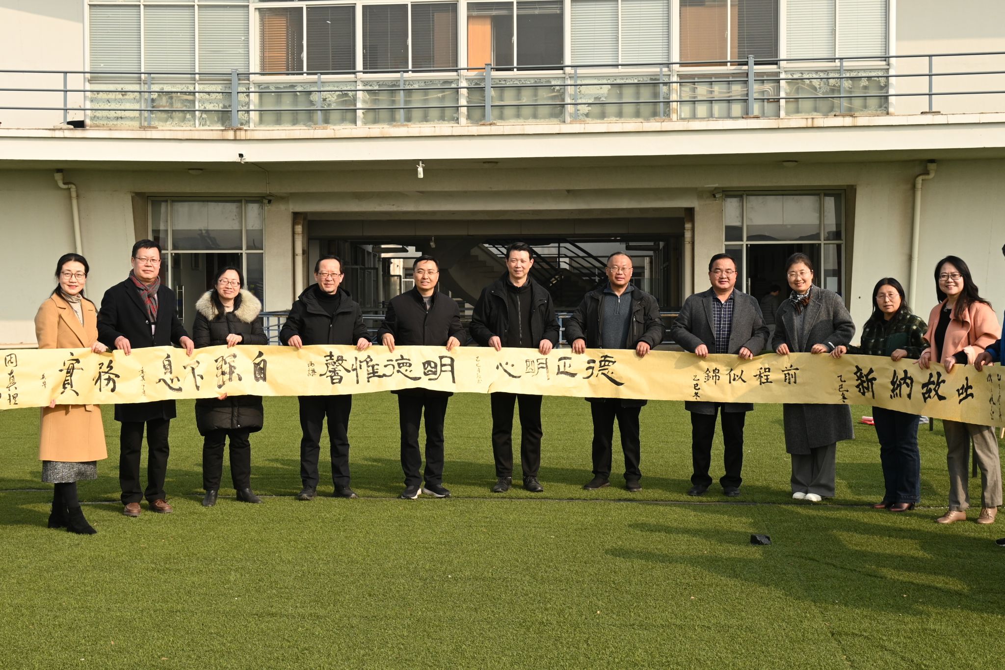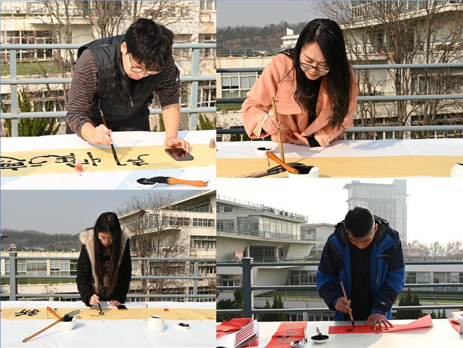 南京体育学院党委常委、宣传部部长、统战部部长,江苏省直书法家协会常务理事许立俊老师莅临指导,并现场为师生题写红福和春联。德正楼四院一中心师生共十八名代表,联袂书写二十米长卷,为“明德正心”注解;随后,现场师生纷纷加入活动,以笔墨交流,互致新年祝福。笔锋如剑,刻下超越自我、追求卓越的心愿;联语铿锵,激荡使命在肩、奋斗有我的誓言。