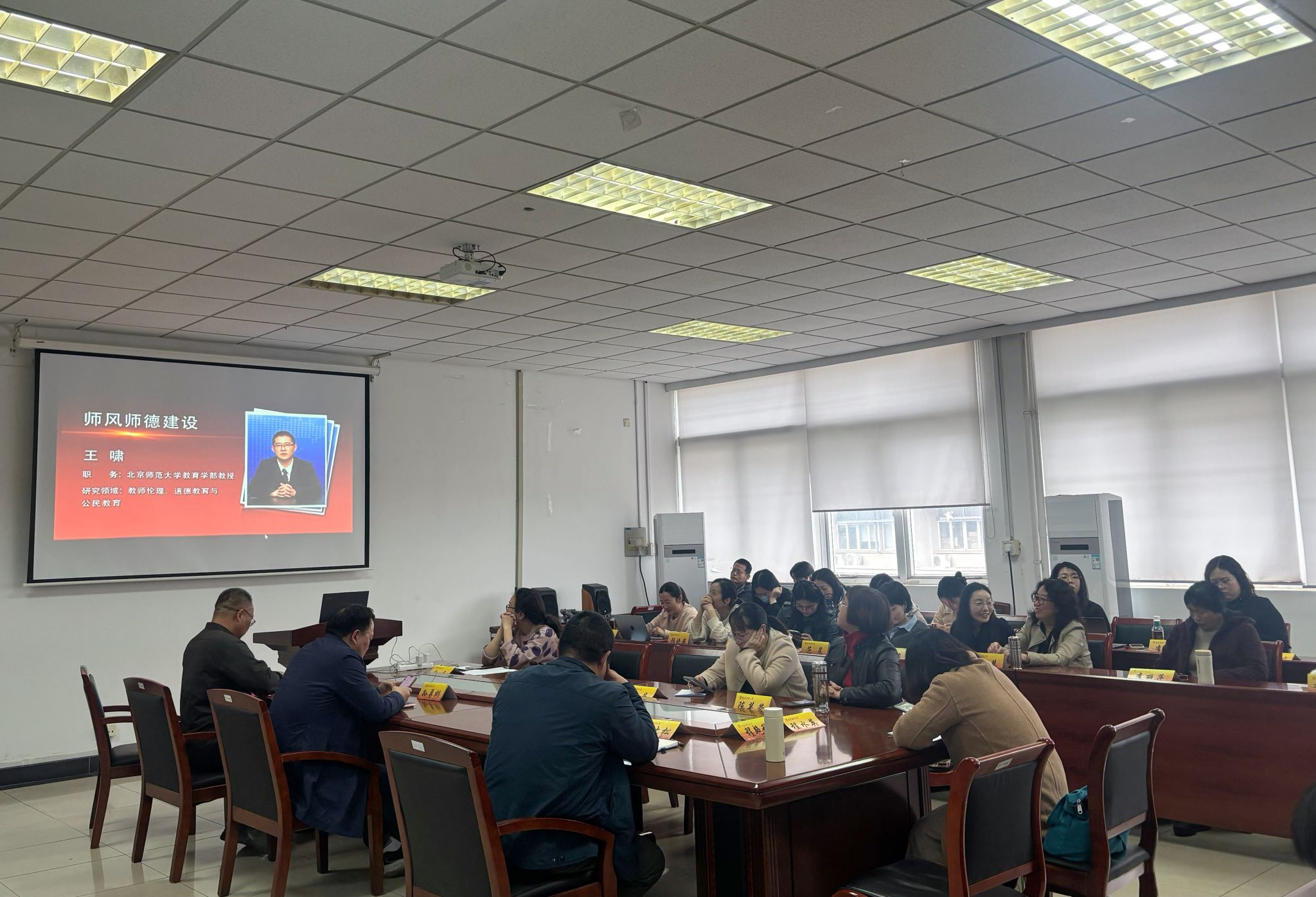 4月9日下午,av女优 在德正楼308会议室,组织召开全体教职工大会,主题是师德师风教育学习。会议由院党委书记陆斌主持。
