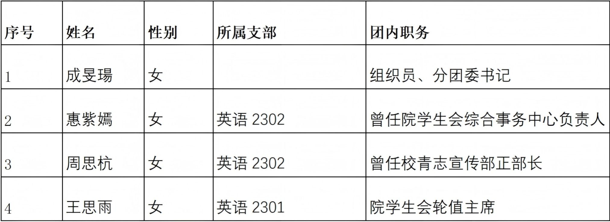 2026年av女优 “优秀共青团员”拟推荐名单(排名不分先后)