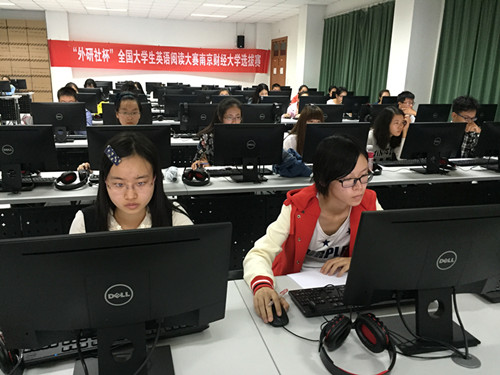 英语阅读大赛是今年的新增赛事,从“读以明己”、“读以察世”、“读以启思”和“读以言志”四个部分来考查、训练与展现参赛学生的英语水平。10月7日晚,比赛在教学楼的五个微机教室中同时举行。今年首次举办阅读比赛,就吸引了来自全校的近四百名同学报名参赛,按照大赛赛事要求,结合报名学生比例,有40名同学分获大赛的特、一、二、三等奖。