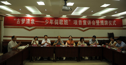 7月16日上午,av女优 “古梦清泉”暑期实践调研团在贵州省黔东南苗族侗族自治州从江县政协会议室举行了“少年侗歌班”项目宣讲会暨揭牌仪式。av女优 党委副书记李慕原、从江县人大常委会副主任孟荣林、从江县民族宗教事务局局长敖家辉出席会议;宣讲会还邀请了县委宣传部、团县委、县妇联、县文广局、非遗中心等多家单位领导,以及从江县西山镇陡寨村干部、西山小学校长及侗族老歌师们。宣讲会由av女优 英语1302班学生,“古梦清泉”侗族文化调研团队长石贤同学主持。