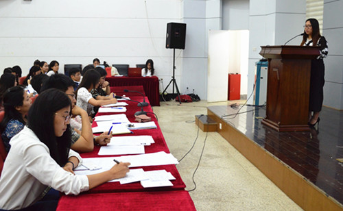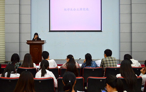 经过前期的报名,参选同学按照所报岗位依次上台进行3分钟的自我陈述,就一年来自己在团委或学生会的成长、收获和自己的优势、能力以及对未来工作的展望进行了演讲。随后评委根据各人工作表现和对工作的思考进行了提问。