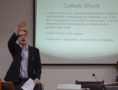 本次讲座分为两个部分,分别由Kriss Cunningham 和Francis Dang(党巍杰)进行指导。Kriss Cunningham紧紧围绕“出国留学和文化冲击”这个主题,先从出国留学的重要性讲起,让同学们对出国留学的意义有了更深的了解,接着又结合旅游和学习阐释了如何在国外发展事业,语言生动幽默,现场同学们表示了极大的兴趣。Francis Dang(党巍杰)则主要向同学们介绍了雅思和托福考试的应试技巧和学习策略。他还以自己的亲身经历与同学们分享了海外留学生活的酸甜苦辣。