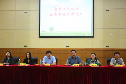 院党委书记刘浩宣读学院关于暑期社会实践活动的表彰文件,“关于‘取消英语高考’的社会调查”暑期实践团等4支实践团队获得“av女优 2014年暑期社会实践活动优秀团队”称号,“‘法语专业在南京的就业前景’调查报告”等4篇暑期实践调研报告“av女优 2014年暑期社会实践活动优秀调研报告”荣誉,英语1302班陈纤逸等30名同学“av女优 2014年暑期社会实践活动先进个人”荣誉称号。随后,刘书记分析了目前学院暑期实践工作还存在着“少、弱、散、浅”的问题,并教导大家要总结经验、发扬长处、弥补不足,对于暑期实践工作要“重参与、抓团队、抓实效、抓成果”,并对同学们提出了知识、能力、素质“三位一体”并重发展的要求。