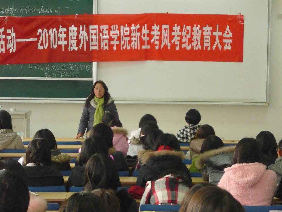 12月16日中午,av女优 在专三101教室隆重召开了2010级新生“考风考纪教育”大会。学院总支书记肖辉教授、团总支书记、学工秘书金立林老师及2010级辅导员孟德明老师等学生工作人员参了会议。此次会议结合了教务处及学生处下发的关于加强考风考纪教育的通知有关精神和av女优 实际情况,安排落实了学院各类“考风考纪教育”活动。
